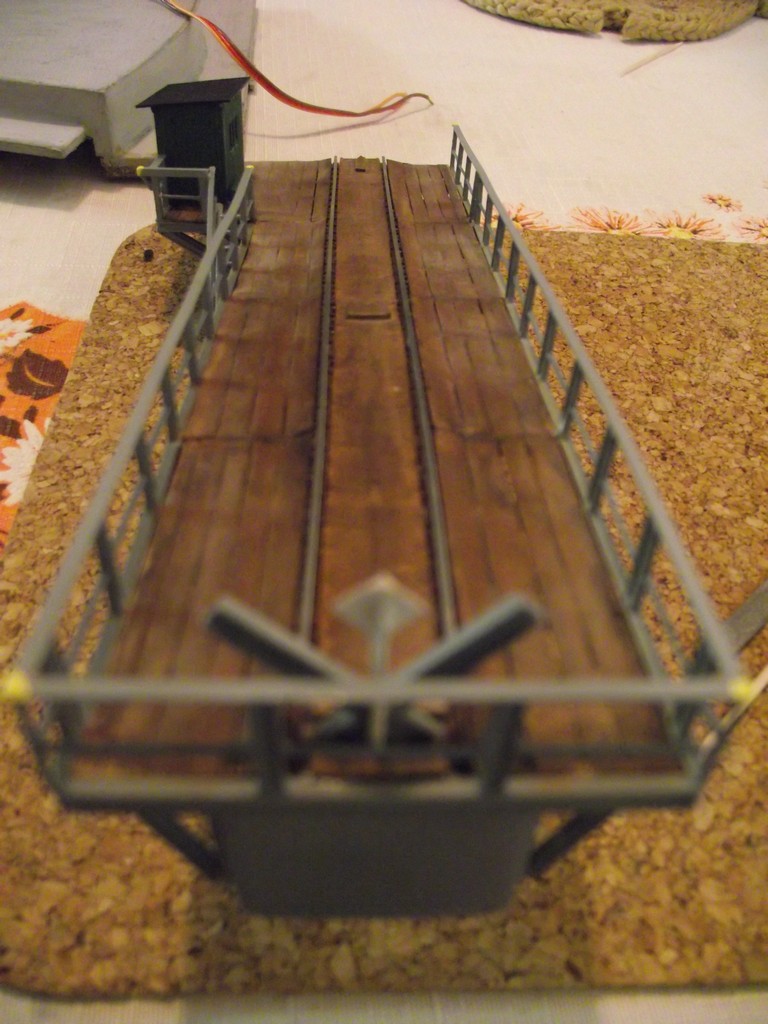 Po úspěšné výstavě jsem se rozhodl, že kolejiště ještě rozšířím. A tak jsem začal přemýšlet jak na to, byt malý a místa v něm ještě méně. Nakonec jsem dospěl k tomu, že rozšířím spodní nádraží o 25cm na šířku a na celou délku kolejiště. Není to sice moc, ale o zábavu budu mít zase na nějakou dobu postaráno. Tento díl bude odjímatelný a bude uložen mimo hlavní panel. Bude mít vlastní napájení, aby se nechalo posunovat nezávisle na směru jízdy vlaku na hlavní trati. Chtěl jsem tam zabudovat i točnu, ale místa je opravdu málo a tak jsem se inspiroval segmentovou točnou od fi. NOCH v H0. V TT se zatím nevyrábí a tak sem se rozhodl, že si ji vyrobím a také jsem to zkusil, výsledek můžete vidět a posoudit na fotkách. Na přídavném panelu bude ještě sklad a čerpačka pohonných hmot pro lok. Diesel a ještě garáže pro lokotky plus dílny. Také jsem provedl pár malých úprav na hlavním panelu, jako například nové nádražní lampy od DOMINIKA a výkop na silnici a mnoho dalších věcí.